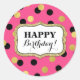 Sticker Rond Joyeux Confetti d'or noir rose Anniversaire