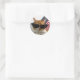 Célébrez la fête du travail avec cet autocollant cool de ma collection "Kitty Koolness", avec un chat orange et blanc aux teintes noires avec un drapeau américain derrière elle. Photo du designer.