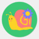 Un mignon escargot rose et coloré contre un mignon arrière - plan vert herbe. Design de poutres colorées. Un escargot joyeux et joyeux.
