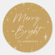 Des autocollants de vacances modernes avec "Joyeux et brillant" affichés dans un script écrit à la main, encerclé par une bordure d'étoiles blanches contre un arrière - plan d'or. Personnalisez les stickers joyeux et lumineux en ajoutant votre nom de famille ci-dessous. Les autocollants fonctionnent très bien comme les scellés d'enveloppe, pour sceller les sacs de faveur, et plus encore!