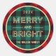 Sticker Rond Joyeux et brillant or vert rouge plaid
