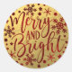 Sticker Rond Joyeux et brillants Feux de neige rouges Noël