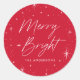 Des autocollants de vacances modernes avec "Joyeux et lumineux" affichés dans un script écrit à la main, cerné par une bordure d'étoiles blanches contre un arrière - plan rouge. Personnalisez les stickers joyeux et lumineux en ajoutant votre nom de famille ci-dessous. Les autocollants fonctionnent très bien comme les scellés d'enveloppe, pour sceller les sacs de faveur, et plus encore!