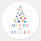 Cet arbre de Noël moderne et chic est orné d'un triangle argenté avec des billes aux couleurs vives accrochées à l'arbre. Les couleurs des ampoules comprennent le vert citron, l'orange, le rose, le violet, le cyan et le bleu. Cet autocollant fonctionne comme un sceau d'enveloppe et une étiquette cadeau. De couleur vive, il se démarque de la foule des rouges et des verts. Donnez une touche moderne à vos vacances. Les essentiels de fête et la décoration de vacances disponibles dans mon magasin. Offrez un paysage de vacances adapté à un magazine avec ce design fabuleux.