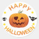 Le citrouille d'Halloween mignon est placé dans le cercle de Happy Halloween et une araignée, chauve-souris et étoiles mignonnes. C'est une illustration numérique.