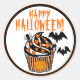 Sticker Rond Joyeux Halloween chauves-souris Cupcake