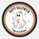 Offrez des faveurs adorables aux invités lors d'une fête annuelle de costumes d'Halloween, ou tout événement avec cet autocollant amusant et simple. Un simple look noir et blanc qui a une typographie de police audacieuse. Un fantôme noir et blanc avec un cocktail, un arc orange et des étoiles. Vous pouvez cacher l'arc et le cocktail si vous voulez juste un mignon fantôme. Il suffit de cliquer sur l'icône "eye" dans l'éditeur de produit complet. Cocktails Et Costumes Cute Booze Boos Et Booze Ghost Happy Halloween Party Round Sticker