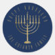 Sticker Rond Joyeux Hanoukka 'Blue Gold Menorah Holiday