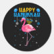 Sticker Rond Joyeux Hanoukka mignon Flamant rose Menorah juif F