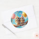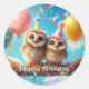 Joyeux Sticker Rond Classique de Chouette d'anniversaire.