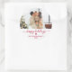 Élégant Script Rouge Moderne "Joyeux Vacances" Calligraphie Script Famille Photo Noël Grand Sticker Rond. Idéal pour les enveloppes d'accessoires de messagerie et les autocollants-cadeaux.