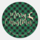 Sticker Rond Joyeux Joyeux Noël Or Noir & Vert Plaid