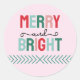 Joyeux et brillant ! Autocollant de fête avec des nuances de rose et de vert. Modèle photo via Pixabay sous licence CC0 et doit être remplacé par votre propre photo.