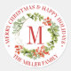 Sticker Rond Joyeux Noël | Aquarelle Monogramme Wreath