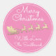 Sticker Rond Joyeux Noël Arbre Nom Père Noël Sleigh Deer Rose