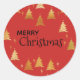 Sticker Rond Joyeux Noël avec des arbres et des étoiles dorés s