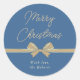 Sticker Rond Joyeux Noël Bleu et crème Ruban manuscrit