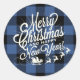 Sticker Rond Joyeux Noël Bonne Année Classique Contrôle Bleu