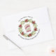 Sticker Rond Joyeux Noël Bonne Année Couronne de poinsettiers