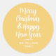 Un autocollant moderne, orange brûlée Joyeux Noël Joyeux Nouvel An ou sceau d'enveloppe avec une calligraphie élégante blanche et une typographie simple et élégante sur un arrière - plan jaune citrouille. Conçu exclusivement pour vous par Happy Dolphin Studio !