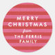 Cet autocollant pour cadeau de Noël présente une rayure rose et rouge joyeuse et lumineuse et est la touche finale parfaite pour tous vos cadeaux. Coordonez vos cadeaux de Noël avec cet autocollant à rayures tendance qui présente un effet de texture de ruban et un texte simple personnalisable. Ajoutez qui est l'expéditeur de votre cadeau avec cet autocollant simple ou utilisez-le pour des faveurs de fête de Noël, des sceaux d'enveloppe de carte de Noël et plus encore. Cette étiquette de Lea Delaveris Design fait partie de la collection Rayure Joyeuse et Lumineuse où vous pouvez trouver des cartes de Noël, du papier-cadeau, des étiquettes et plus encore.