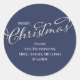 Sticker Rond Joyeux Noël Calligraphie Hiver Marine Bleu Plaid