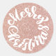 Sticker Rond Joyeux Noël Calligraphie Rose Gold Pailleté