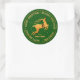 Cet autocollant fait sur commande de Noël des textes a le Joyeux Noël écrit en plusieurs différentes langues et est appareillé avec la damassé verte et le renne d'or pour coordonner avec cette collection ainsi vous pouvez vous mélanger et être assortis.