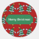 Sticker Rond Joyeux Noël! Danse Motif des arbres de Noël