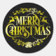 Célébrez la période la plus merveilleuse de l'année et personnalisez vos cadeaux de Noël pendant la période des fêtes de la manière la plus pratique avec les autocollants de Noël. Comportant les mots "Joyeux Noël" dans un style typographique, ainsi que des ornements décoratifs et les silhouettes de deux petits rennes de couleur dorée sur fond noir, cet autocollant rond classique est parfait pour ajouter une touche personnalisée à vos cadeaux, décorer des enveloppes, étiqueter des paquets ou pour de nombreuses autres utilisations.
