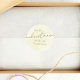 Ce design présente un Joyeux Noël, une typographie dorée, un sceau d'enveloppe de Noël, simple minimaliste, moderne minimaliste, aquarelle, avec une écriture calligraphique élégante et stylée, faisant un excellent autocollant de cadeau. Personnalisé avec le nom de la famille.