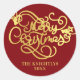 Autocollant de Noël personnalisé élégant avec un vœu JOYEUX NOËL dans une typographie de calligraphie élégante et moderne en or métallisé faux sur la couleur de fond de votre choix (illustré en rouge). ASSISTANCE : Pour obtenir de l'aide sur la modification ou la personnalisation du design, le changement de couleur, le transfert du design sur un autre produit ou si vous souhaitez des articles coordonnés, contactez le designer AVANT DE COMMANDER via l'onglet MESSAGE de discussion Zazzle ci-dessous ou envoyez un e-mail à makeitaboutyoustore@gmail.com.
