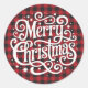 Sticker Rond Joyeux Noël écriture Plaid Buffle Rouge & Noir
