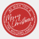 Sticker rond classique de Noël Joyeux en lettres de script. Cliquez sur le bouton Personnaliser pour customiser cette conception avec votre texte.