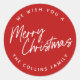 Sticker rond classique de Noël Joyeux en lettres de script. Cliquez sur le bouton Personnaliser pour customiser cette conception avec votre texte.