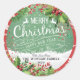 Joyeux et brillant / Joyeux Noël et Bonne année Saison de Noël Stickers de voeux de vacances Modèle - Chic Botanical Floral Poinsettia, Red Berry Pine Tree Branch et Snow Land.