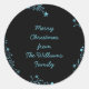 Typographie d'écriture décorative Joyeux Noël de la famille Williams, vous pouvez changer le texte et ajouter votre nom, Stars Black Blue Shiny Chic Holiday Season Enveloppement cadeau, Sticker rond