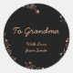 Typographie d'écriture décorative à grand-mère, Avec l'amour de Père Noël, vous pouvez changer le texte et ajouter votre nom, Étoiles Brown noir Cuivre brillant Look Chic Holiday Season Enveloppement cadeau, Sticker rond