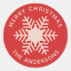 Sticker Rond Joyeux Noël. Fêtes aux flocons rouges roses
