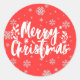 Sticker Rond Joyeux Noël Flocons de neige Fêtes Rouge Autocolla