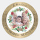 "Joyeux Noël Gold Foil Wreath Photo Return Adresse Classic Round Sticker." Élégant feuille d'or (photo de haute qualité de l'or réel) arrière - plan avec texte de calligraphie script que vous customisez. Cachez vos Noël et vos Cartes de fin de année avec votre photo de famille entourée d'une charmante couronne florale de Noël classique et de votre nom et adresse de retour. Art peint en aquarelle par Audrey Jeanne Roberts, artiste et designer de renommée internationale, copyright.