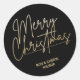 Joyeux Noël dans un faux script de feuille d'or et vos noms en lettres chic, ces autocollants noirs sont élégants pour toute occasion de Noël. PLUS DE COULEURS et de produits assortis dans notre collection.