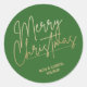 Sticker Rond Joyeux Noël Gold Script sur Vert