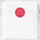Célébrez la période des fêtes avec cet autocollant rond festif qui comporte les mots « Joyeux Noël » dans un style manuscrit mignon sur un fond rouge vibrant. Parfait pour sceller des enveloppes, décorer du papier-cadeau, ajouter à des faveurs de fête ou personnaliser votre emballage de vacances. Son look moderne et joyeux fonctionne à merveille pour les fêtes de Noël classiques, les rassemblements hivernaux cosy ou les présentations de cadeaux de vacances élégantes. Idéal pour les cartes de Noël, les remplissages de bas, le scrapbooking et l'étiquetage festif.