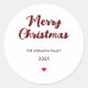 Sticker rouge manuscrit Joyeux Noël classique rond