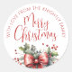 Sticker Rond Joyeux Noël moderne Script Bow rouge du nom