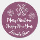 Sticker Rond Joyeux Noël Nom du script Snowflake Berry Pink