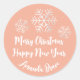 Sticker Rond Joyeux Noël Nom du script Snowflake Gris Pêche