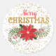 Sticker Rond Joyeux Noël Parties scintillant or Poinsettia