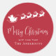 Un autocollant rouge saisonnier amusant pour vos cartes de fin de année de Noël et la correspondance avec une silhouette blanche de rennes volant Père Noël traîne à travers l'air, "Joyeux Noël" dans un script blanc élégant et votre nom dans une simple typographie blanche moderne.